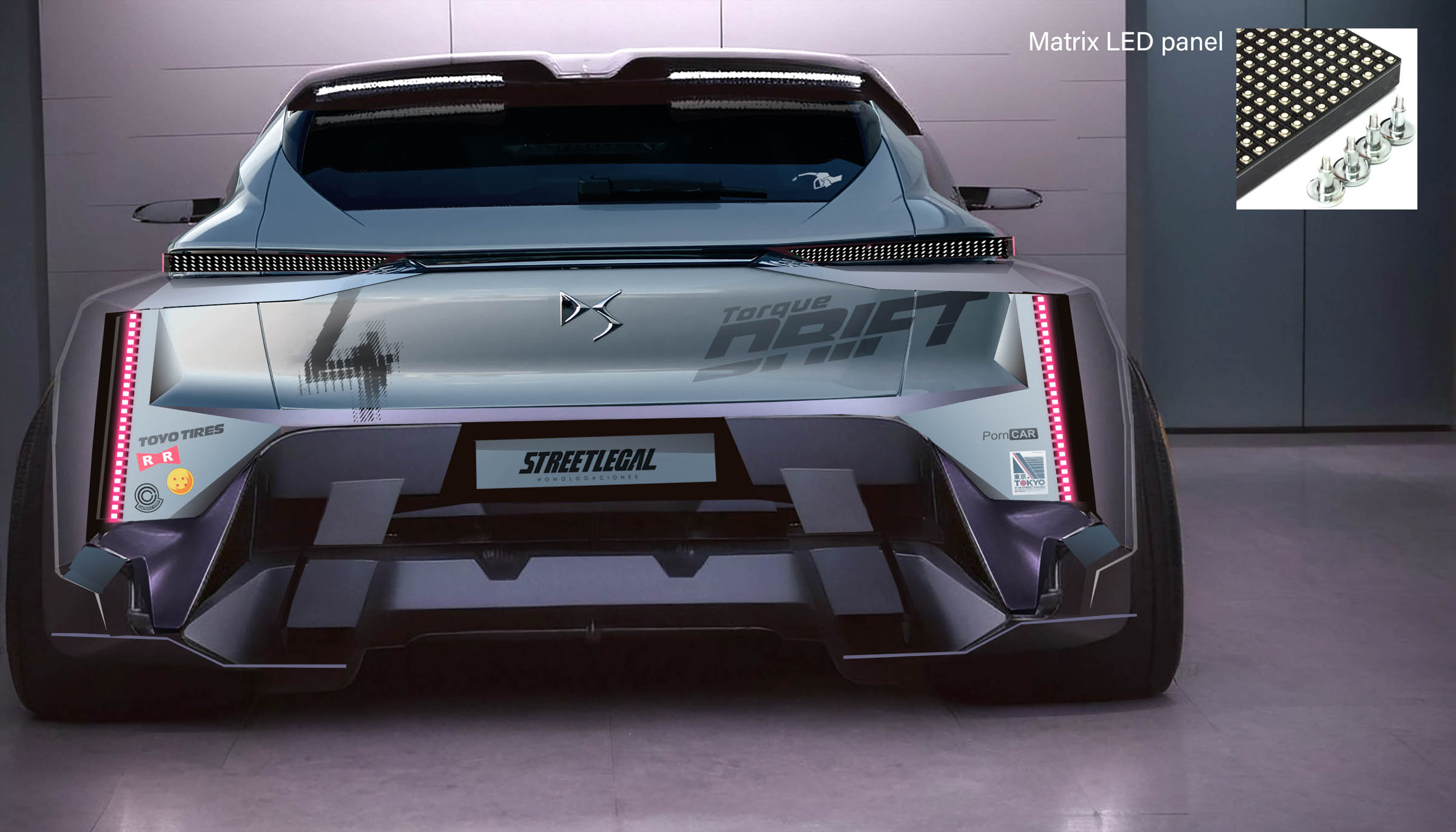 A spectacular graphic effect reveals the name of the inspiration model :'N°4'. The front and rear pixelated lights are simple LED bars, light and efficient.